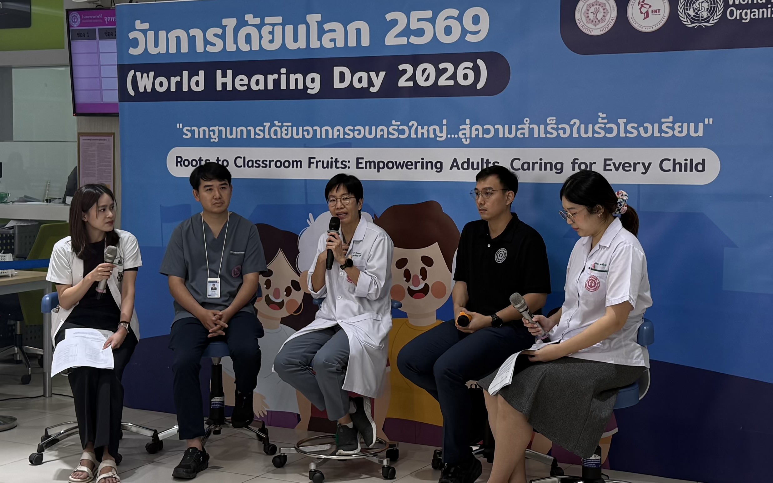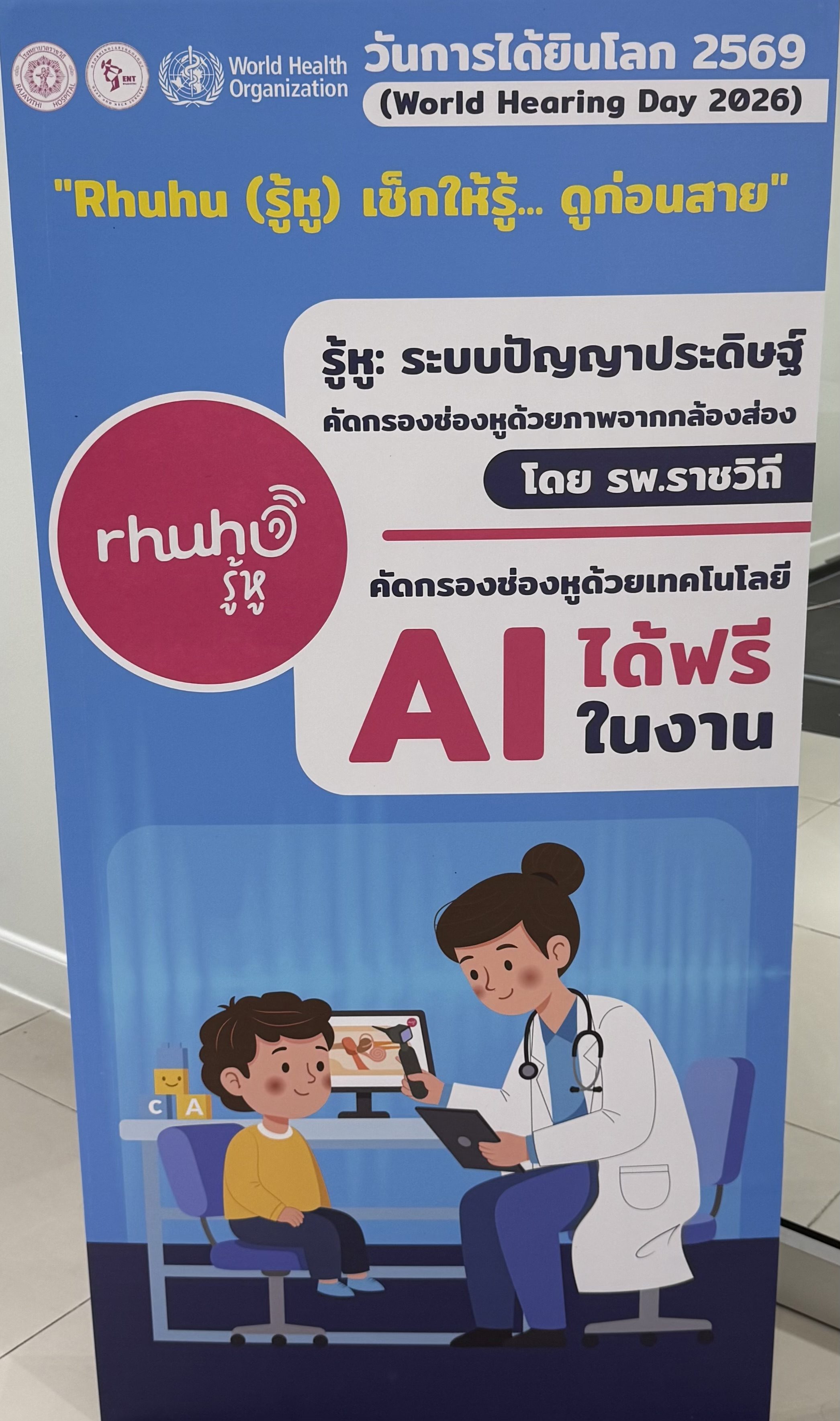 Our activities will be proposed a holistic approach , recognizing that family extends beyond parents to grandparents . By treating adult hearing loss and educating caregivers on basic ear and hearing care. We empower them to support children’s health and linguistic development . From safe hygiene practices to advanced solutions like cochlear implants. We act to ensure that no children left behind. The activities will be at OPD which include 1“ Familly awareness which are ear and hearing screening by otolaryngologists , the new application “Rhuhu “ that is the innovation from our department for external ear screening with AI and small talk from otologist specialist about ear and hearing care for themself and children at home 2 Exhibition of success story from children with cochlear implants and smart talk from elderly with hearing aid of our department . All of the activities will be recorded and broadcast through Rajavithi website .The patients , caregivers and people who are interested can attend .
