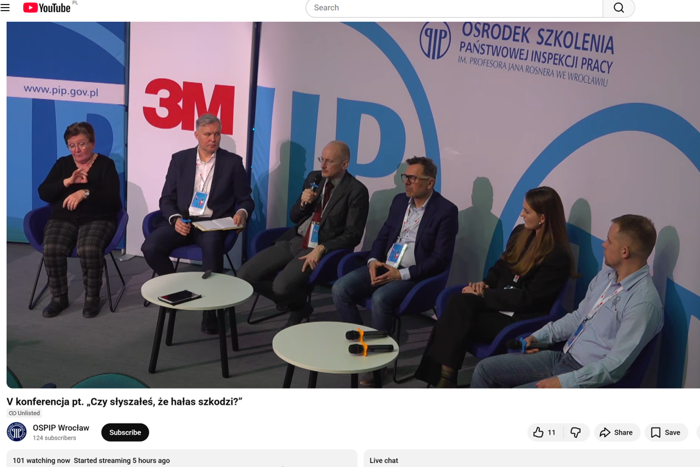 The 5th conference, “Have you heard – noise is harmful?”, was organized by the National Labour Inspectorate, ATEST, the Audio Engineering Society, Wrocław University of Science and Technology, and 3M Poland (at the National Labour Inspectorate’s Center of Excellence in Poland). We hosted the following advisory and content partners: the Central Institute for Labour Protection – National Research Institute, the World Hearing Center, the Polish Association of the Deaf, the Polish Acoustical Society, the Acoustical Committee of the Polish Academy of Sciences, the MEDINCUS Hearing and Speech Center, Audika, and Amazon.