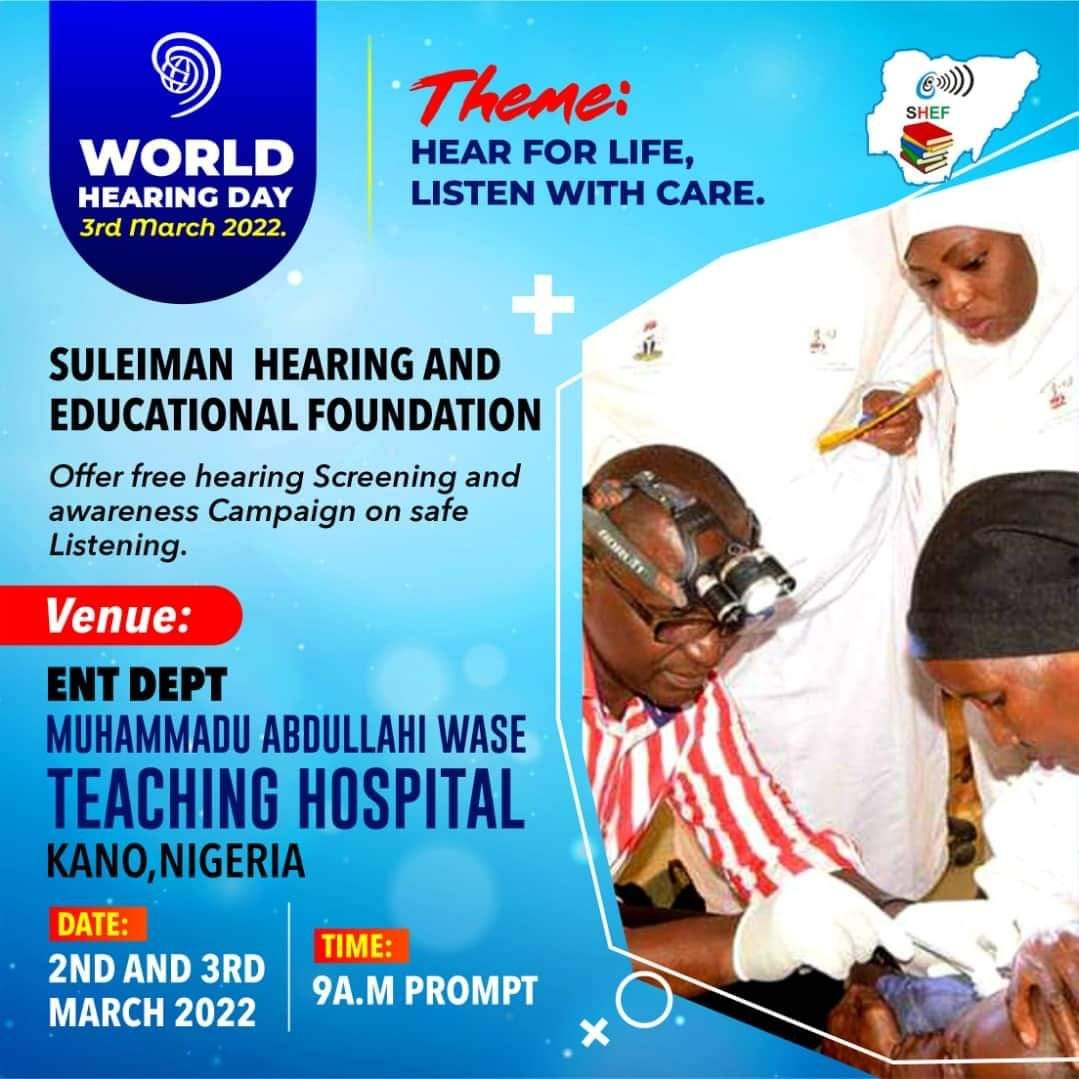 In commemoration of World Hearing Day 2026, the Suleiman Hearing and Educational Foundation (SHEF) will implement a multi-component awareness, screening, and primary ear care strengthening initiative in Kaduna, Katsina, Kano States and Kwara States , Nigeria.