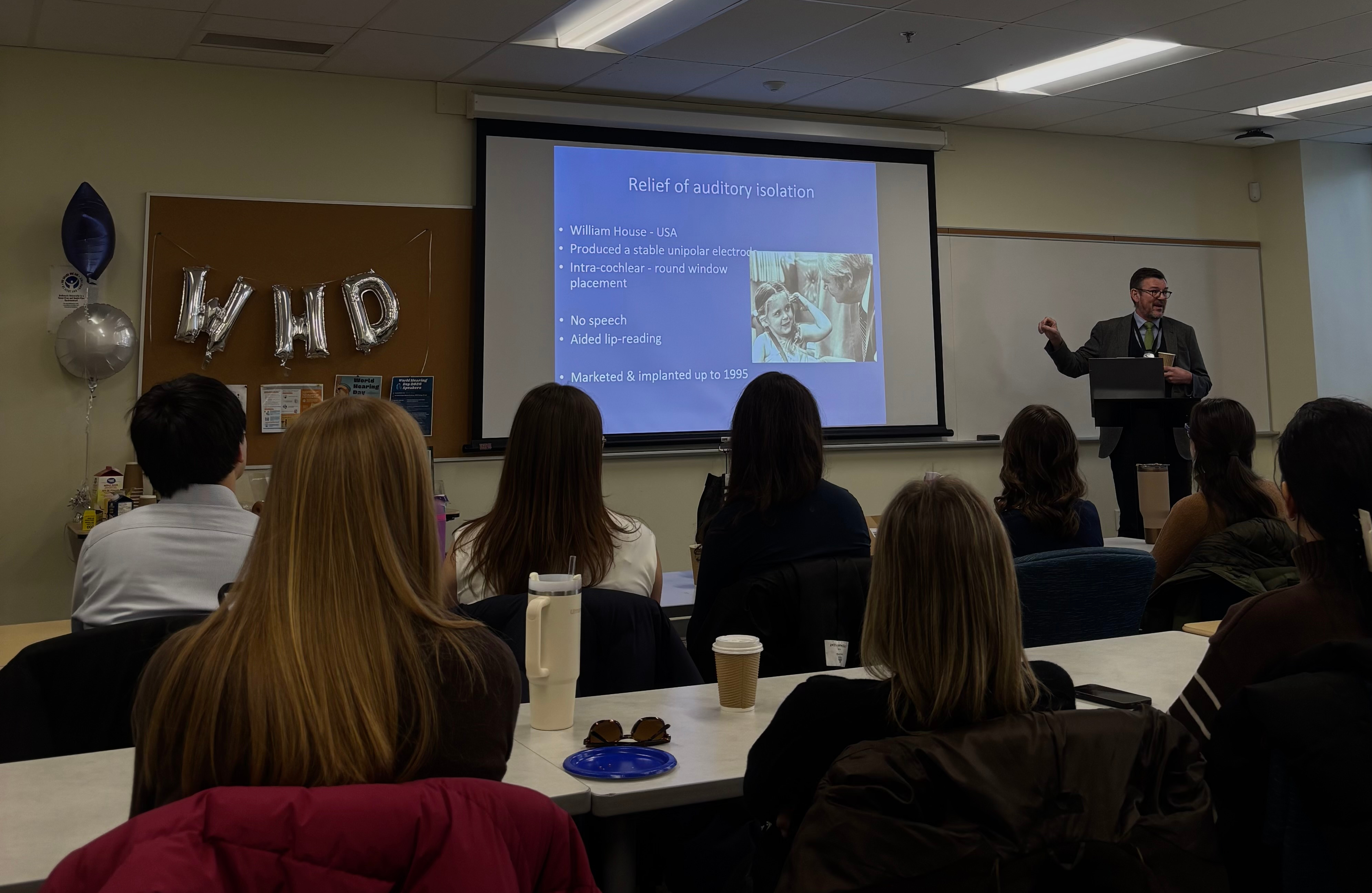 On March 3, 2026, Dalhousie University’s School of Communication Sciences and Disorders hosted a World Hearing Day event as part of the World Health Organization’s annual campaign to raise awareness of hearing health and care. The event was organized by MSc Audiology students Sophia Hibbert and Savanna Richard as part of a student-led project under the supervision of Dr. Olivier Valentin, Assistant Professor of Audiology.