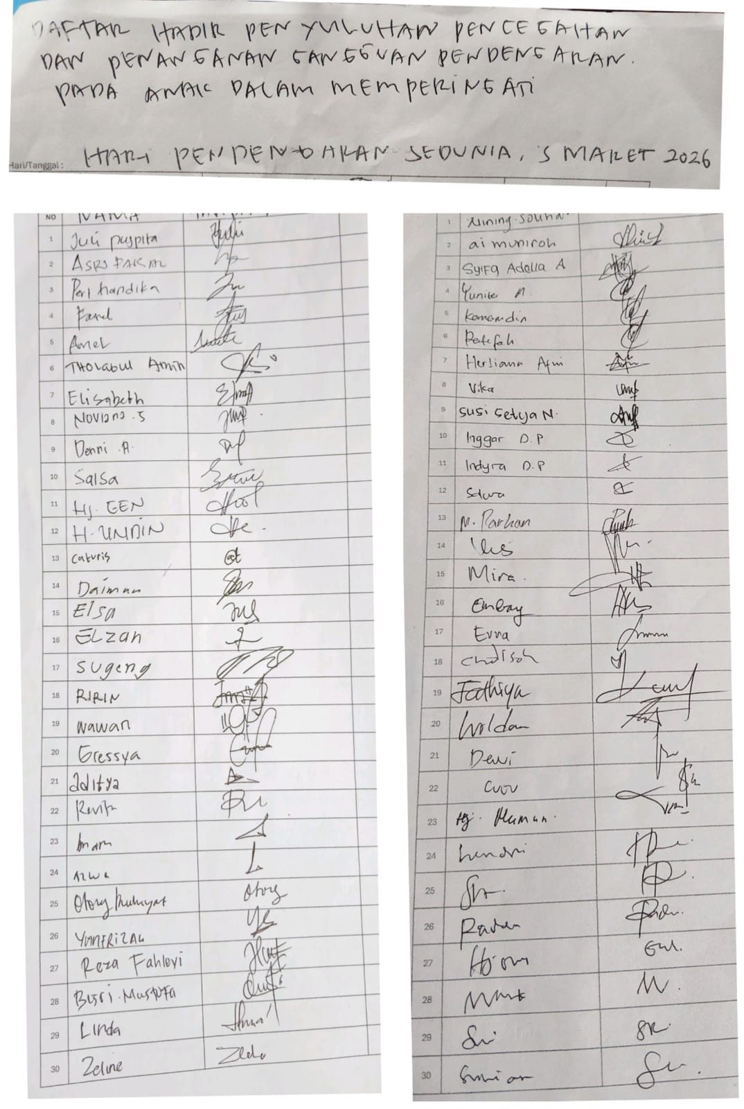 Raising awareness and educating communities about WHO theme for World Hearing Day on March 3rd, 2026, at Sukadami Community Health Center