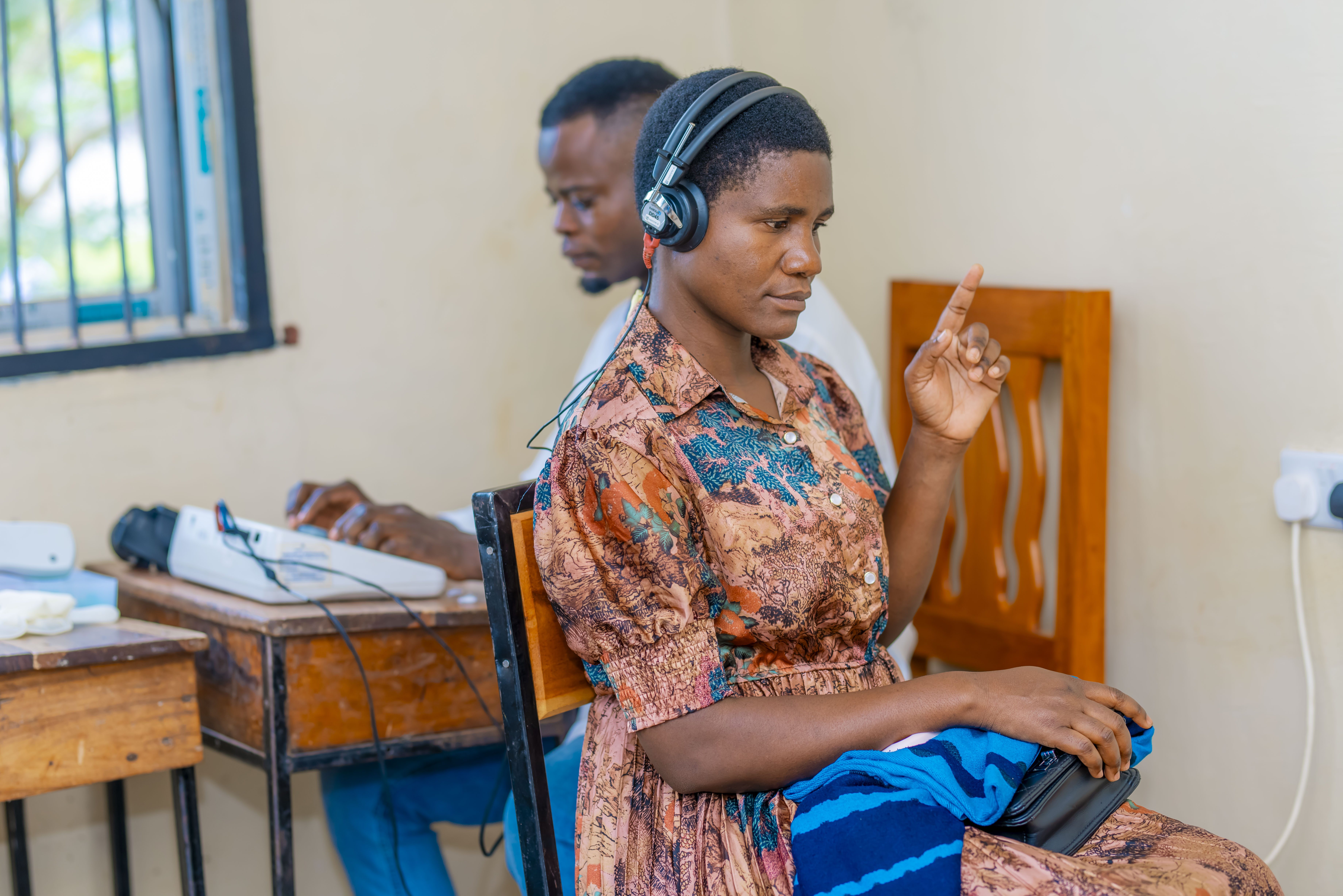 a woman with hard of hearing undergoing hearing screening