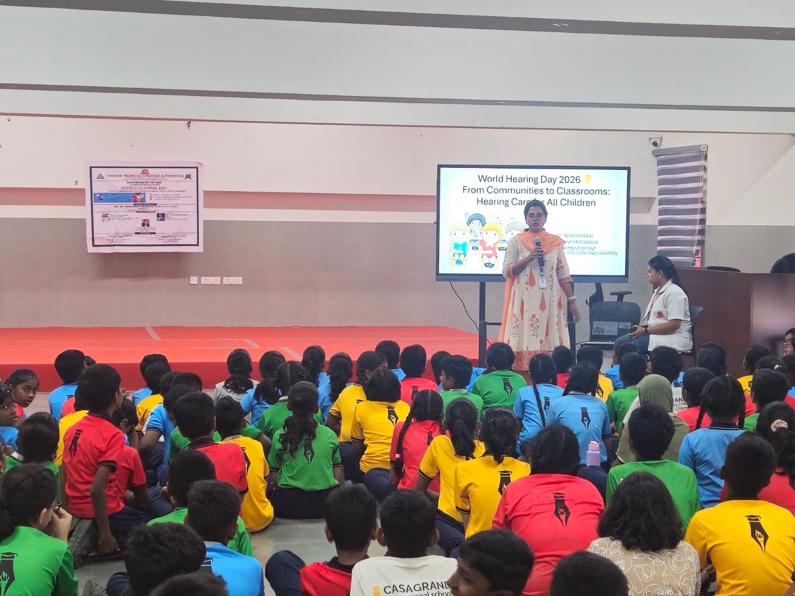 The Department of ENT at Tagore Medical College & Hospital, Chennai, commemorated **World Hearing Day on 3 March 2026** in alignment with the theme **“From Communities to classrooms: Hearing Care for All Children.”** The programme was organized to raise awareness about hearing health and the importance of early detection and prevention of hearing loss in children, supporting the global initiative of the World Health Organization.