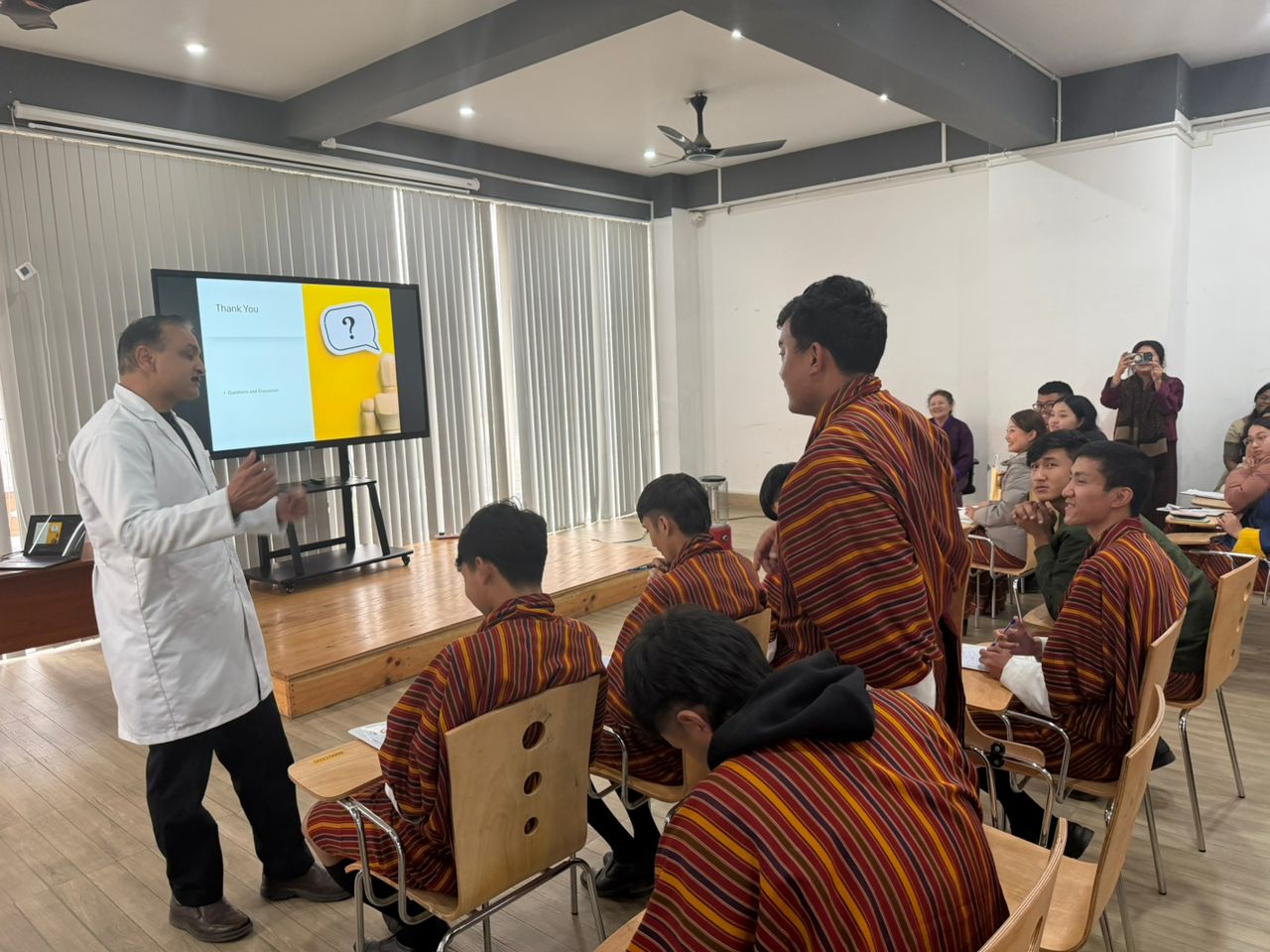 An interactive question and answer session was led by Mr. Sonam Jamtsho, ENT Technician In-charge. Students actively participated by asking questions related to hearing health, screening methods, and the management of hearing problems. The interactive discussion allowed participants to gain practical knowledge and clarified many misconceptions regarding hearing loss.