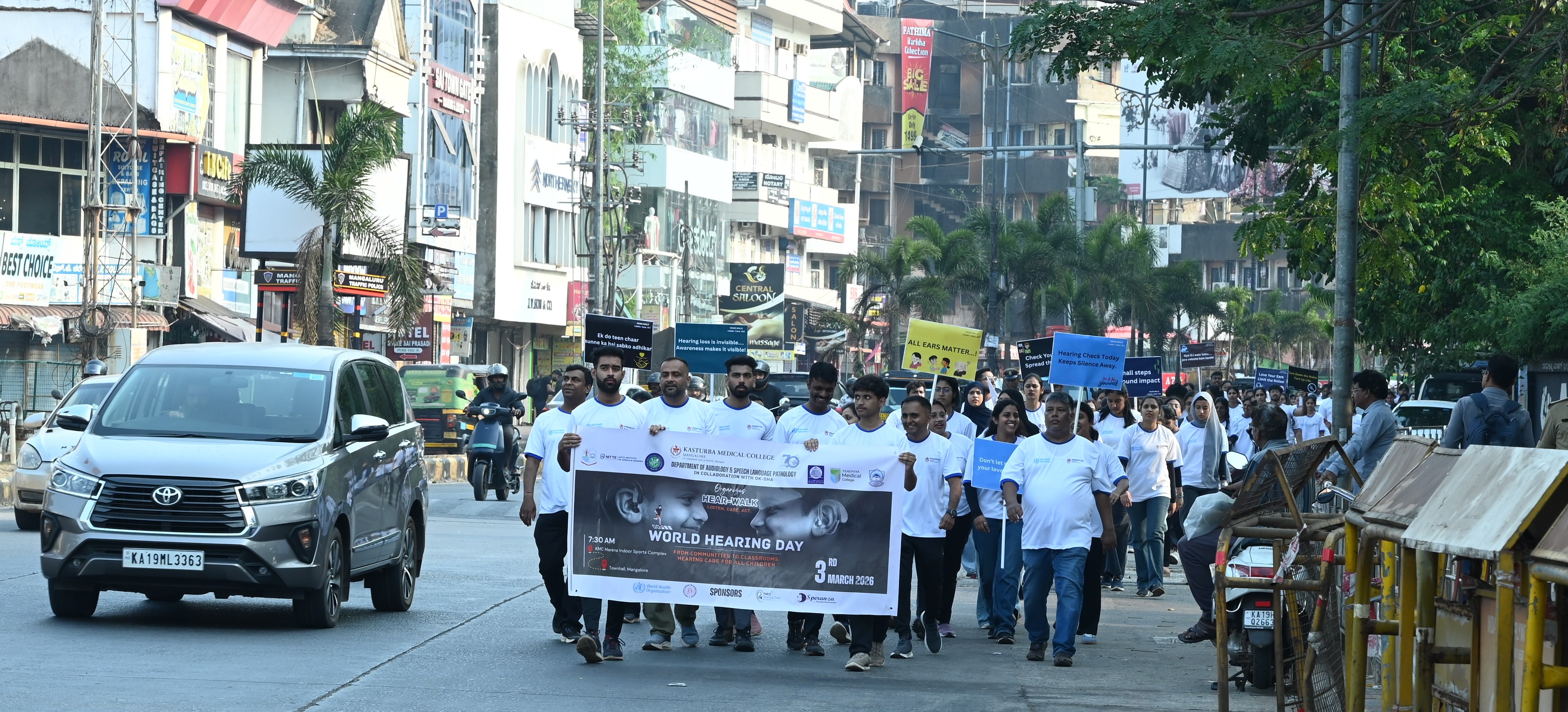 In celebration of the World Hearing Day 2026, the Department of Audiology and Speech-Language Pathology, Kasturba Medical College Mangalore, in collaboration with the Dakshina Kannada Speech and Hearing Association organized a walkathon in Mangalore city aimed at raising awareness on ear and hearing care. The other participating institutions included Nitte Institute of Speech and Hearing, Dr. M.V. Shetty College of Speech and Hearing, A.J. Institute of Medical Sciences, Mangalore Academy of Professional Studies, Father Muller college of Speech and Hearing and Yenepoya Medical College. This collective participation showcased a united commitment to promoting hearing health awareness across the community.