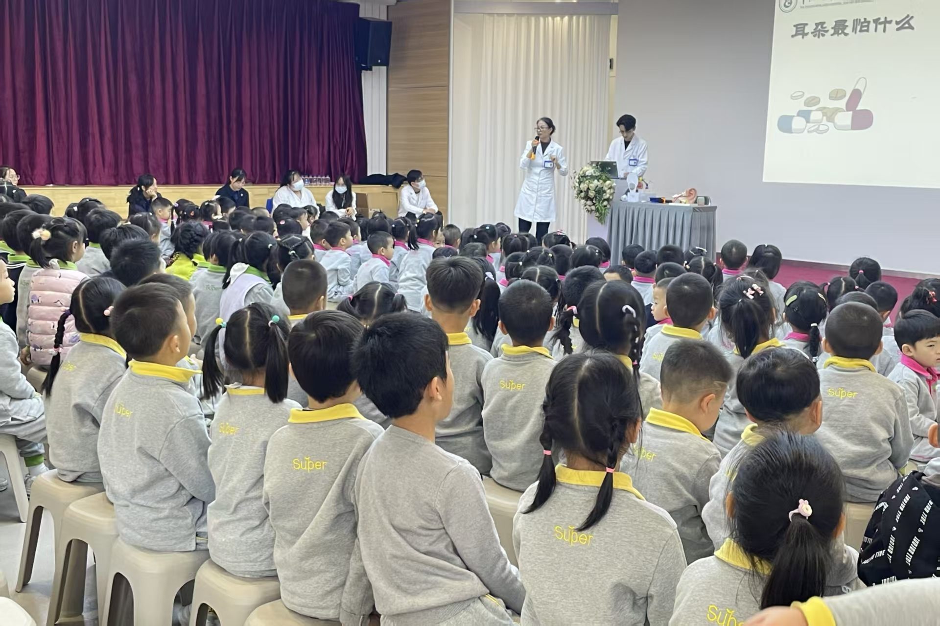 After the kindergarten activity, a community science popularization event followed, attracting over 50 participants, including local children and elderly residents. Volunteers set up a simple booth, using professional otoscopes to check participants’ ears gently, pointing out common issues like earwax buildup and advising on proper care. They explained practical noise-avoidance tips: reducing headphone volume to 50% or less, keeping distance from loud appliances like blenders, and wearing earplugs in noisy places. They also distributed illustrated science booklets and leaflets, designed with simple words and pictures for both kids and the elderly to easily grasp hearing protection knowledge.