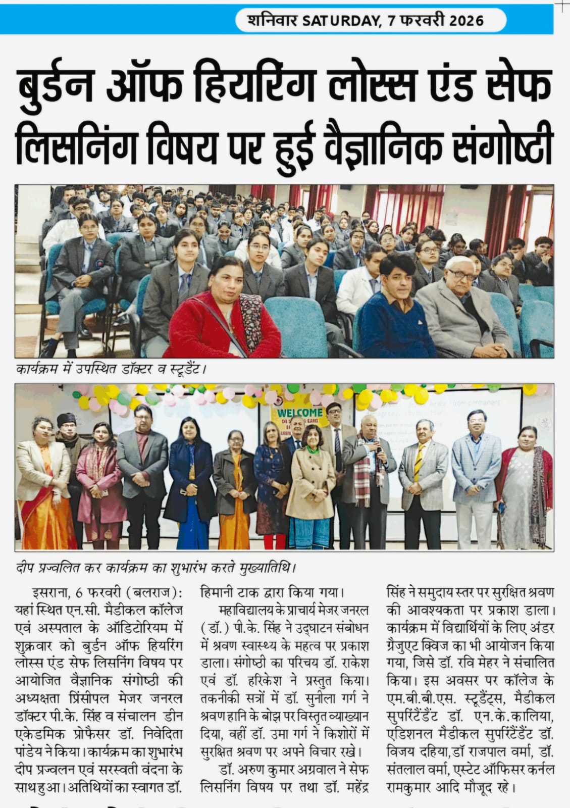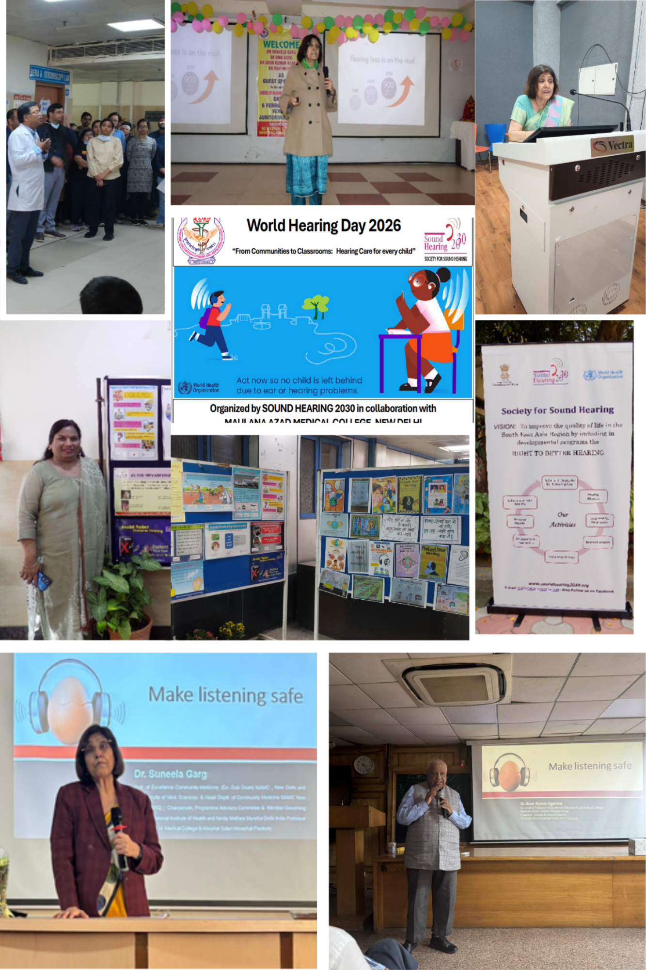 A series of high-level academic seminars focused on the “Burden of Hearing Loss and Safe Listening” were hosted at several medical colleges: BPS Medical College, Sonepat : This seminar introduced the WHO’s “Make Listening Safe” initiative. Key discussions included the impact of lifestyle and technology on Noise-Induced Hearing Loss (NIHL) and the necessity of community engagement. Kalpana Chawla Government Medical College, Karnal (October 3, 2025): Experts highlighted the socioeconomic consequences of untreated hearing impairment and the urgent need for early screening and policy integration .N.C. Medical College & Hospital, Panipat : This event emphasized that modern hearing loss is largely preventable through “Safe Listening” habits, particularly among youth who are at risk due to improper headphone use. Audiology in ENT at MAMC : A specialized scientific program provided hands-on training for advanced diagnostic tests, including BERA, VEMP, and VNG. Community and School-Based Screenings Direct community interventions focused on early identification and prevention: Bhaikaka University, Gujarat : Launched an integrated program for adolescent girls, combining anaemia control with awareness on hearing loss identification. School Screening Programme, Daryaganj : Screenings at SKV Dayanand and SKV Bulbuli Khana involved 222 female students. Significant findings included a 26.2% prevalence of ear wax at SKV Dayanand and high rates of ear pain, itching, and tinnitus (nearly 38%) at SKV Bulbuli Khana. Recommendations included professional wax removal and ENT referrals for symptomatic students. World Hearing Day 2026 Observances In March 2026, MAMC and Sound Hearing 2030 organized several sensitization events: Educational Sessions: On March 5, 2026, students were briefed on the National Programme for Prevention and Control of Deafness under the theme “From Communities to Classrooms: Hearing for all”. Public Outreach: A sensitization program along with ear screening was held in the ENT OPD area to educate the general public on the “do’s and don’ts” of ear care. This included demonstrating the WHO hearing test app and distributing informational pamphlets. Sound Hearing 2030 & Maulana Azad Medical College, New Delhi in collaboration with: National Institute of Health & Family Welfare (NIHFW), Munirka, New Delhi organized an ear and hearing camp at National Institute of Health & Family Welfare (NIHFW), Munirka, New Delhi. Approx. 200 individuals were screened.