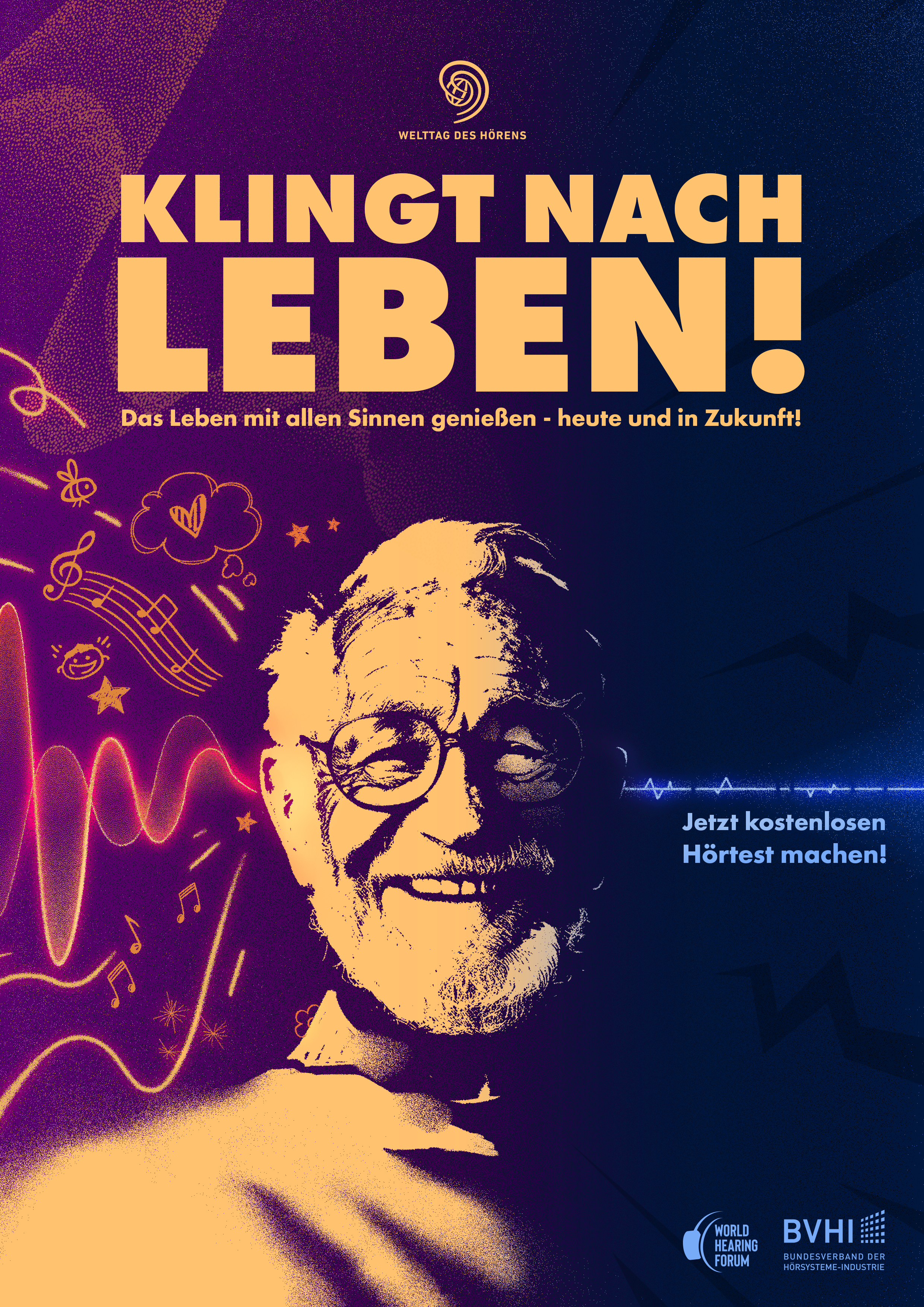 The 2026 campaign surrounding World Hearing Day is under the patronage of Federal Health Minister Nina Warken. The campaign is entitled ‘Sounds like Life’. Hearing care professionals, ENT doctors and other interested parties can order free materials (2 posters, 10 flyers, 3 brochures) from the German Hearing Instruments Association (BVHI). The campaign is promoting hearing health and hearing tests in an eye-catching way on social media with a variety of visuals and activities, as well as on local radio stations.
