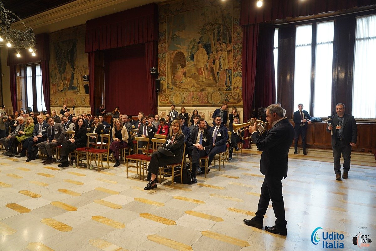 The importance of hearing, especially in childhood, was further emphasized by the event’s distinguished ambassador, Paolo Fresu, one of Italy’s most internationally acclaimed musicians. Through a live trumpet performance, he reinforced the core message, highlighting how listening is not only central to the musical experience but also a key element of prevention and health awareness.
