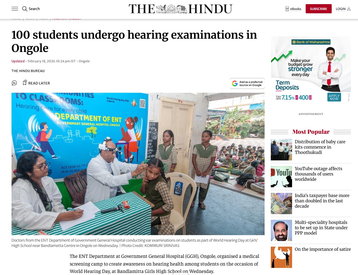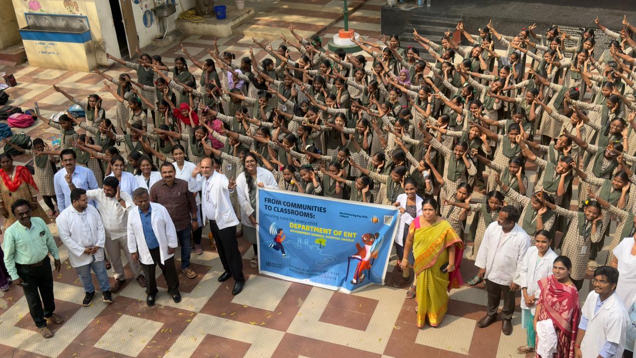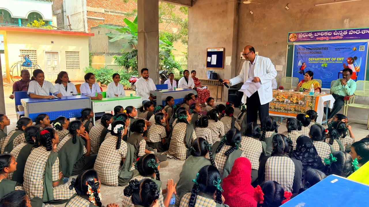 The Department of ENT, Government General Hospital (GGH), Ongole organized a hearing screening medical camp for the students of Government Girls School, Bandlamitta today, as part of World Hearing Day awareness and sensitization activities.