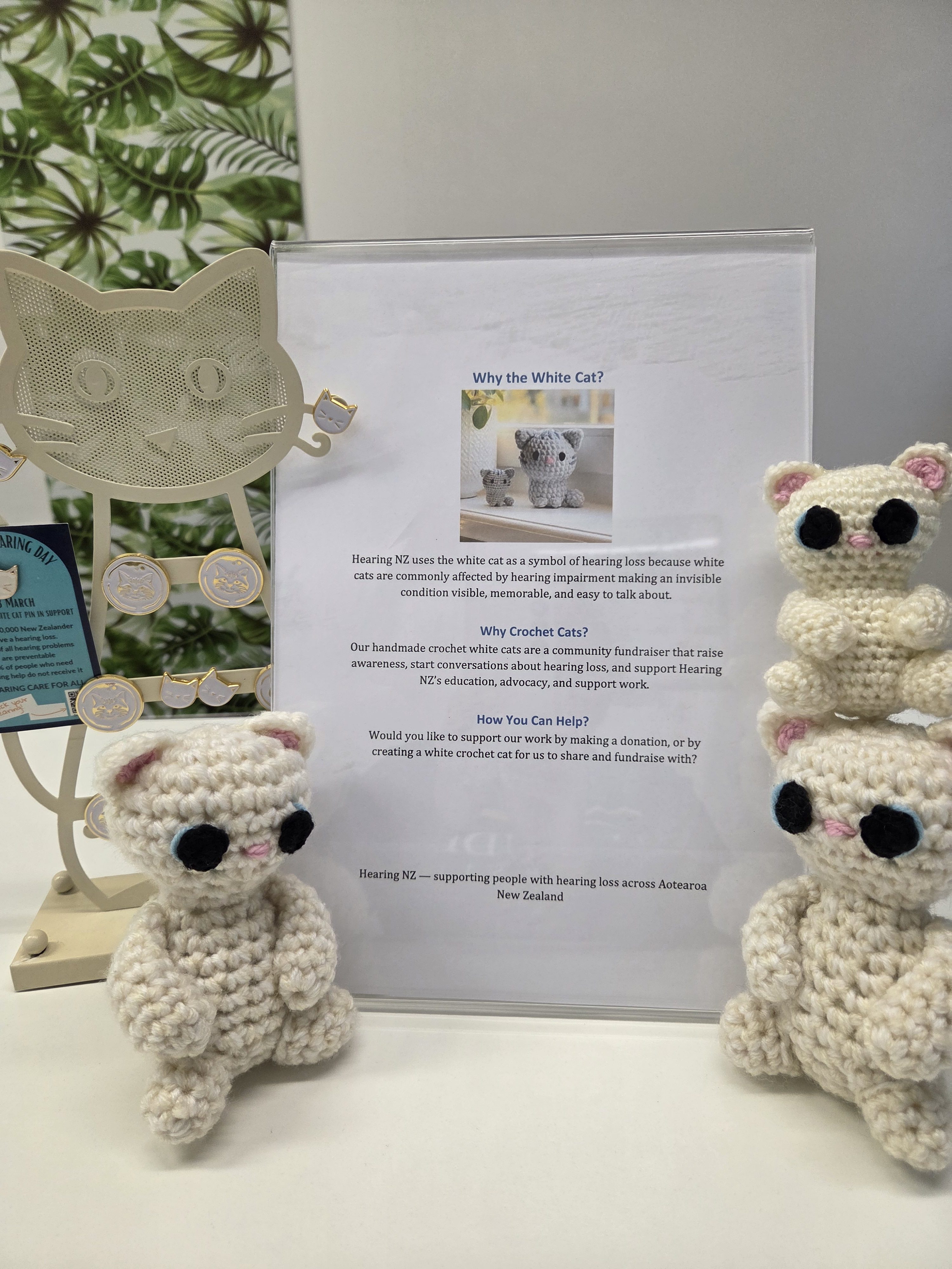 White cat pins were also distributed to participating schools, reinforcing the connection between national leadership and grassroots engagement. Schools were encouraged to incorporate the symbol into assemblies and classroom discussions about safe listening, inclusion, and communication. To further deepen community participation, we invited individuals, families, and community groups to knit or crochet white cats as a creative awareness activity. This intergenerational initiative provided a practical way for communities to contribute while fostering conversations about prevention, early identification, and the impact of listening fatigue on learning and wellbeing.