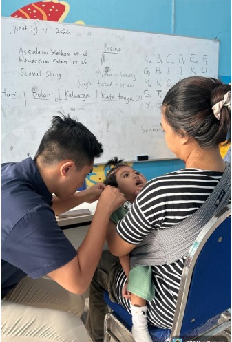 This ear health screening activity is the result of a strategic collaboration between Dr. Soetomo General Hospital and (Rumah Anak Prestasi) RAP, which began with the PPDS ENT community service program initiative in the 2023/2024 academic year. Involving a multidisciplinary team—including ENT specialists, residents, nurses, and RAP staff—this program emphasizes the importance of integrating primary health services into inclusive communities.