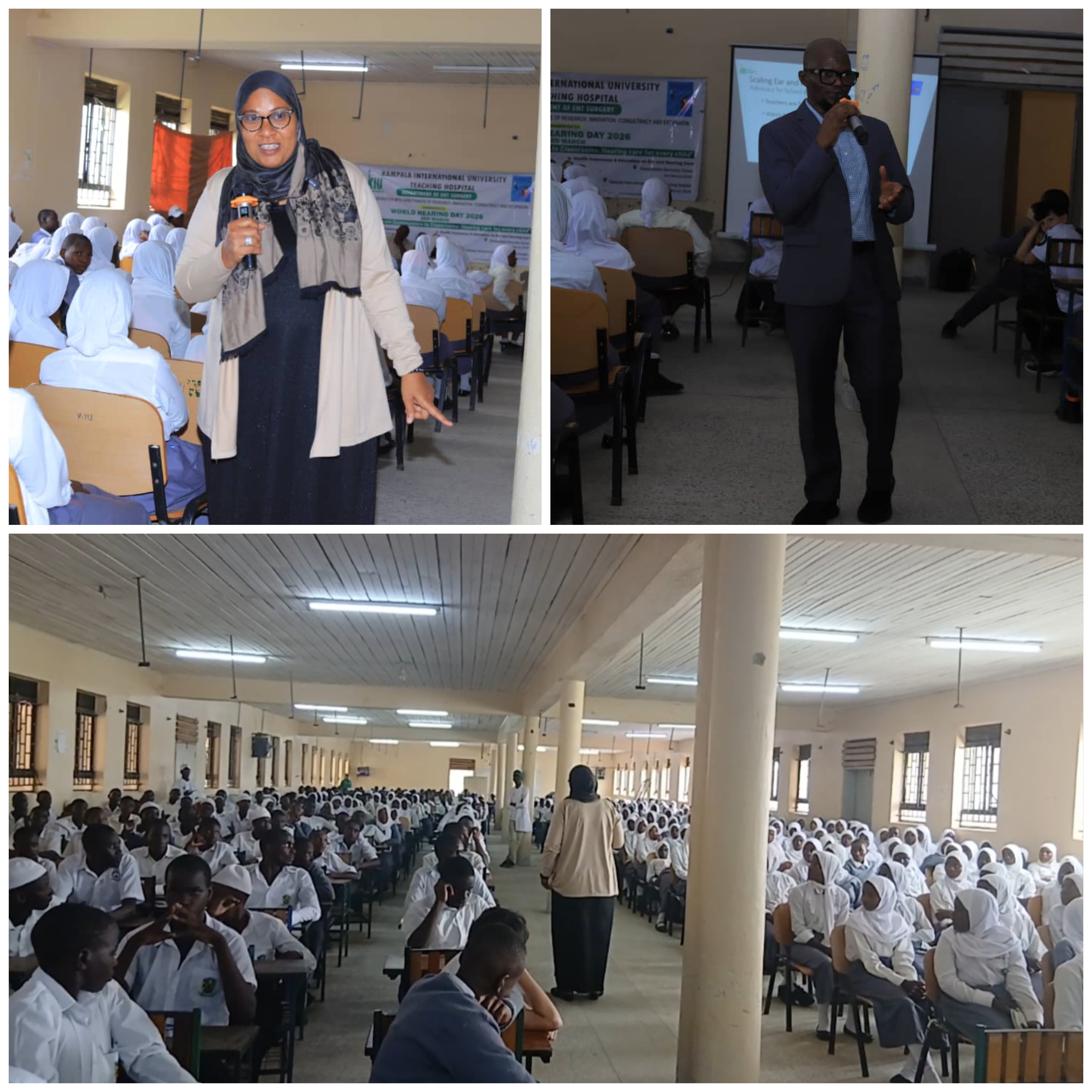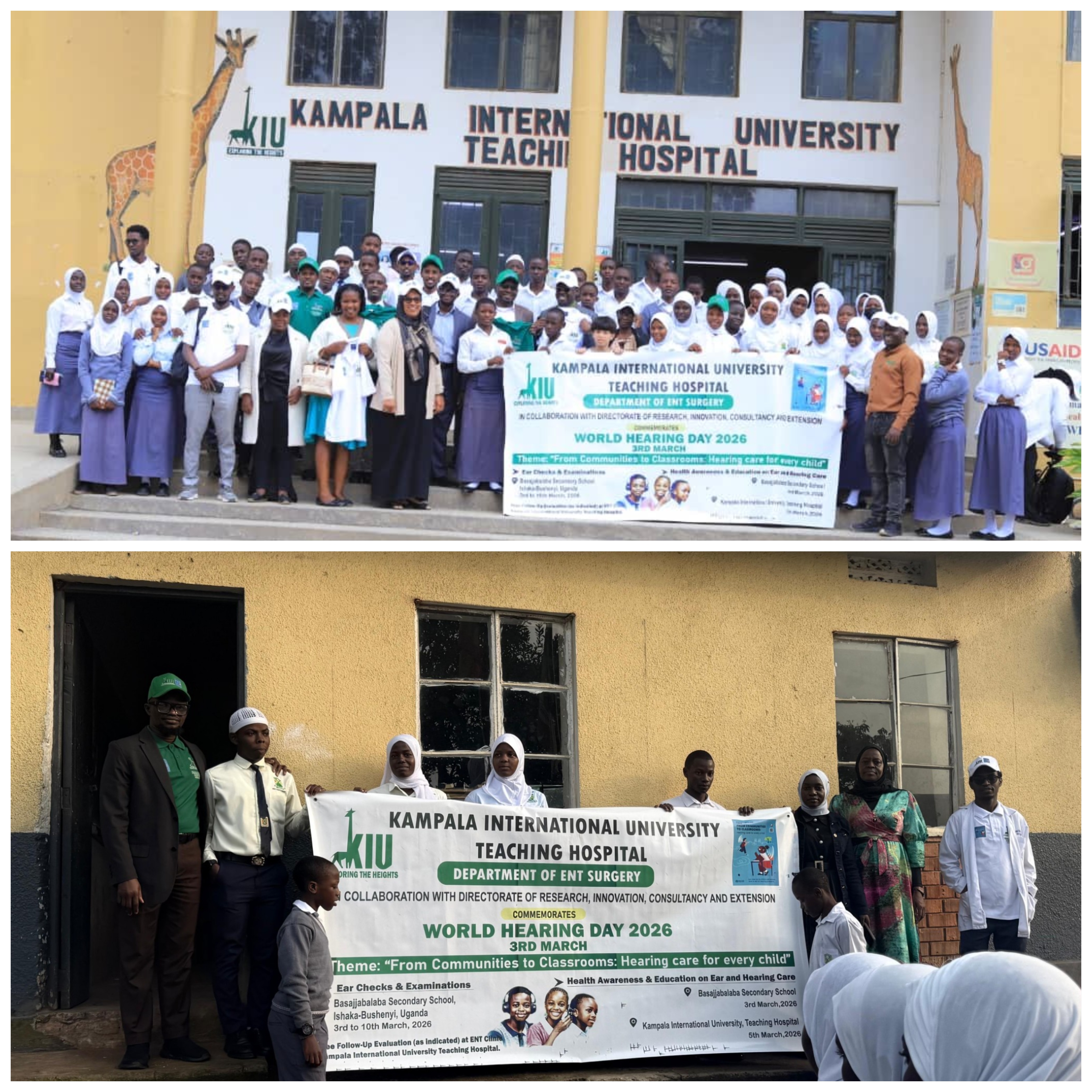 Stakeholder engagement and permissions: This was commenced from the hospital with The Director of Clinical Services and The Chief Executive Officer of Kampala International University Teaching Hospital (KIUTH), then The Dean of Faculty of Clinical Medicine and Dentistry, The Principal of the College of Health Sciences, as well as The Directorate of Research, Innovation, Consultancy and Extension, Kampala International University (KIU); to intimate them about World Hearing Day (WHD) campaign and getting institutional support and ownership as and when needed. There had been a visit to Basajjabalaba Secondary School (BBSS), Ishaka-Bushenyi, within the last week in January 2026, to engage the headship of the school about the intent of choosing the school for the commemoration of WHD, in view of the theme for this year; the school was appreciative and expressed readiness for the WHD events. Through the unwavering support of the management of KIUTH, it was easy to reach out to the District Health Officer and District Education Officer of Bushenyi (both of whom were represented by the Education Officer – Special Needs, Bushenyi District at the second lecture of the events), while efforts are still on the way to reach the Mayor of Bushenyi District.