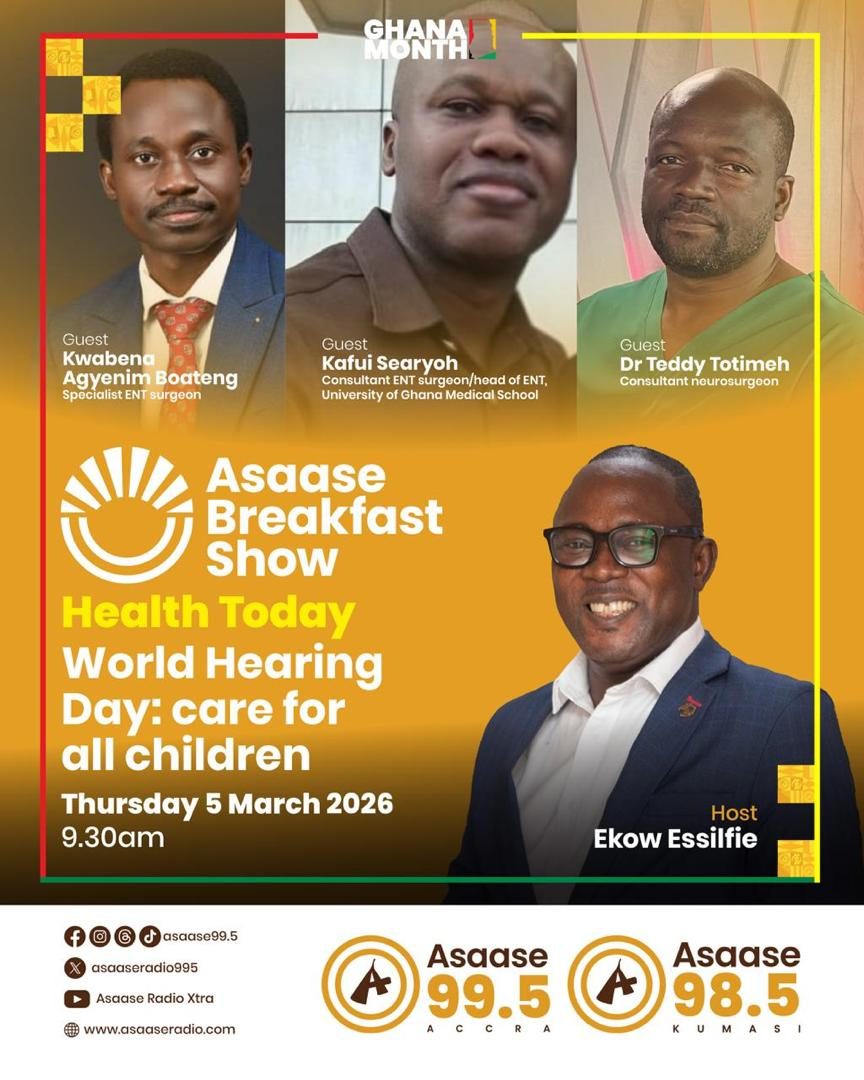 Events planning was by a team of ENT doctors, audiologists, speech and language therapists and administrative staff of the Ear, Nose and Throat Department of the Korle Bu Teaching Hospital. Events included an open day in the hospital for patients and staff ( the clinic was an open event with health talks, ear screening, hearing screening and treatment of reported conditions). Health talks on the theme, early identification of ear and hearing conditions were carried out at the Child health and Maternity Departments as well as ENT Department throughout the week. There was also a midweek seminar for health staff (in-person and online engagement) on the theme for the celebration with focus on how best ear and hearing care professionals will increase awareness of hearing healthcare. It was a time to make the various professions (family physicians, ENT doctors and nurses, audiologists and speech and language therapists) of the collaborative efforts needed to enhance and promote ear and hearing care, all agreed to the need to have a strategic plan and national ear and hearing care policy to guide activities and serve for monitoring and evaluation of progress. On media engagements, two stations offered airtime on their popular shows for discussion on hearing care for all children.
