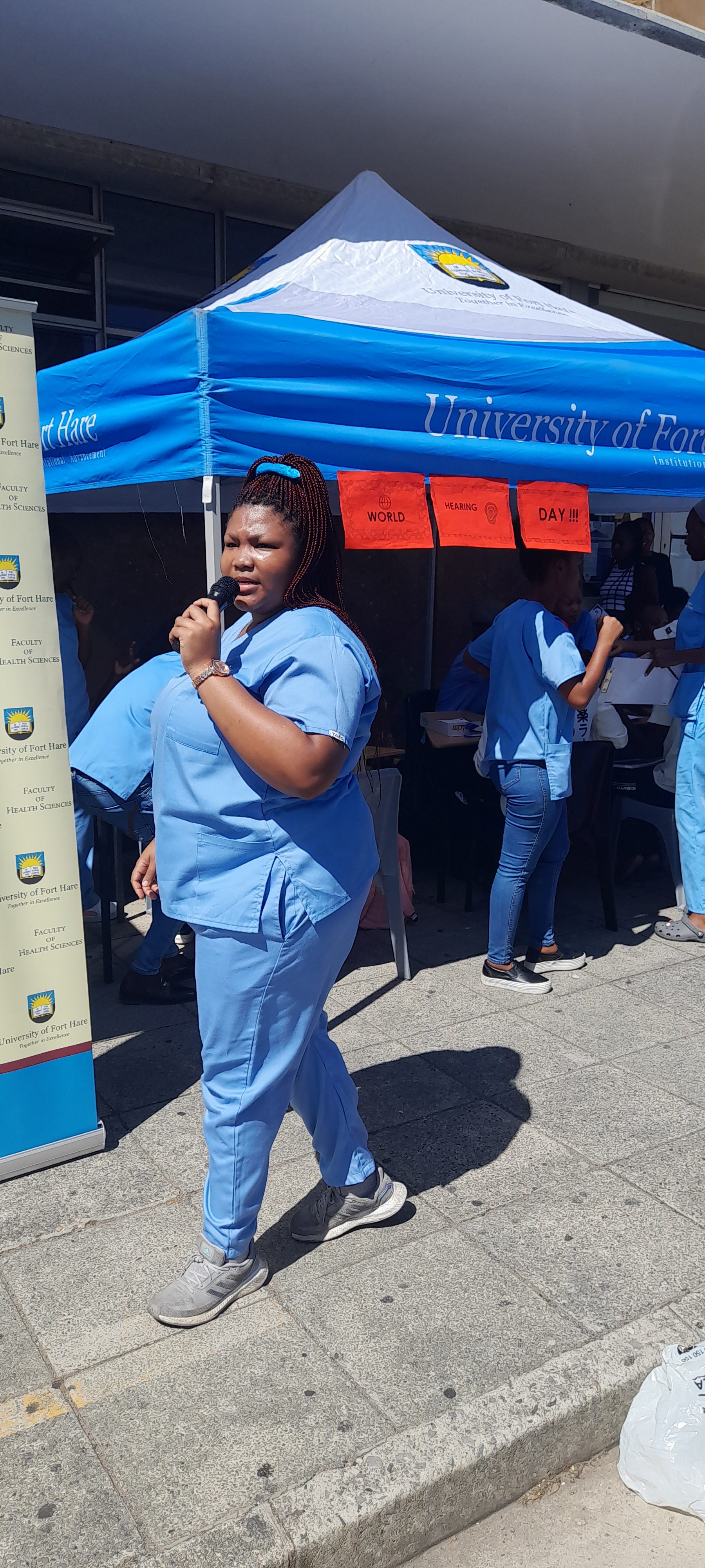 As the University of Fort Hare (UFH) Rehabilitative Sciences department, we decided that charity begins at home by celebrating World Hearing Day within the UFH community at the Alice and East London campuses. The target population was students and staff because the World Health Organization reports that over 1 billion young adults are at risk of permanent, avoidable hearing loss due to unsafe listening practices and ototoxic medications. We thus saw it fit to raise awareness about ear and hearing care among students and staff at our institution. This was done by conducting ear screenings and health talks and raising awareness about our profession among attendees at our stalls. A total of 317 people were screened; most of whom did not have ear and hearing complaints, followed by those complaining of itchy ears, blocked ears, and hearing difficulties. # We are making ear and hearing care a reality for all!