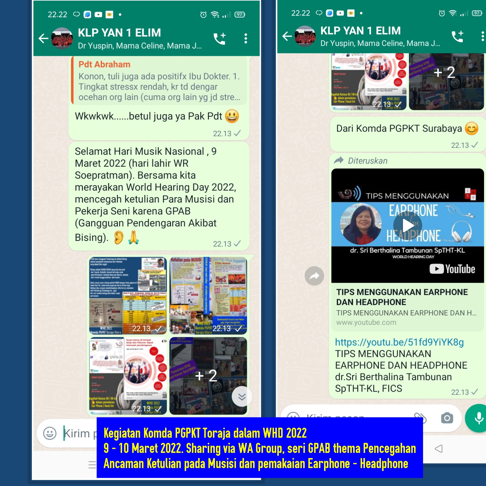 Because of The Pandemic and most of us are GP who vaccinate almost every day, so we chose to Sharing education Via 25 WhatsApp Group about Preventing Noise from music, using earphones and formula 60/60 and how to download Sound Level Meter on Android. But in one time, We can Introduce Sign Language to Church Woman Gatherings on World Day Of Prayer , March 28th, 2022.