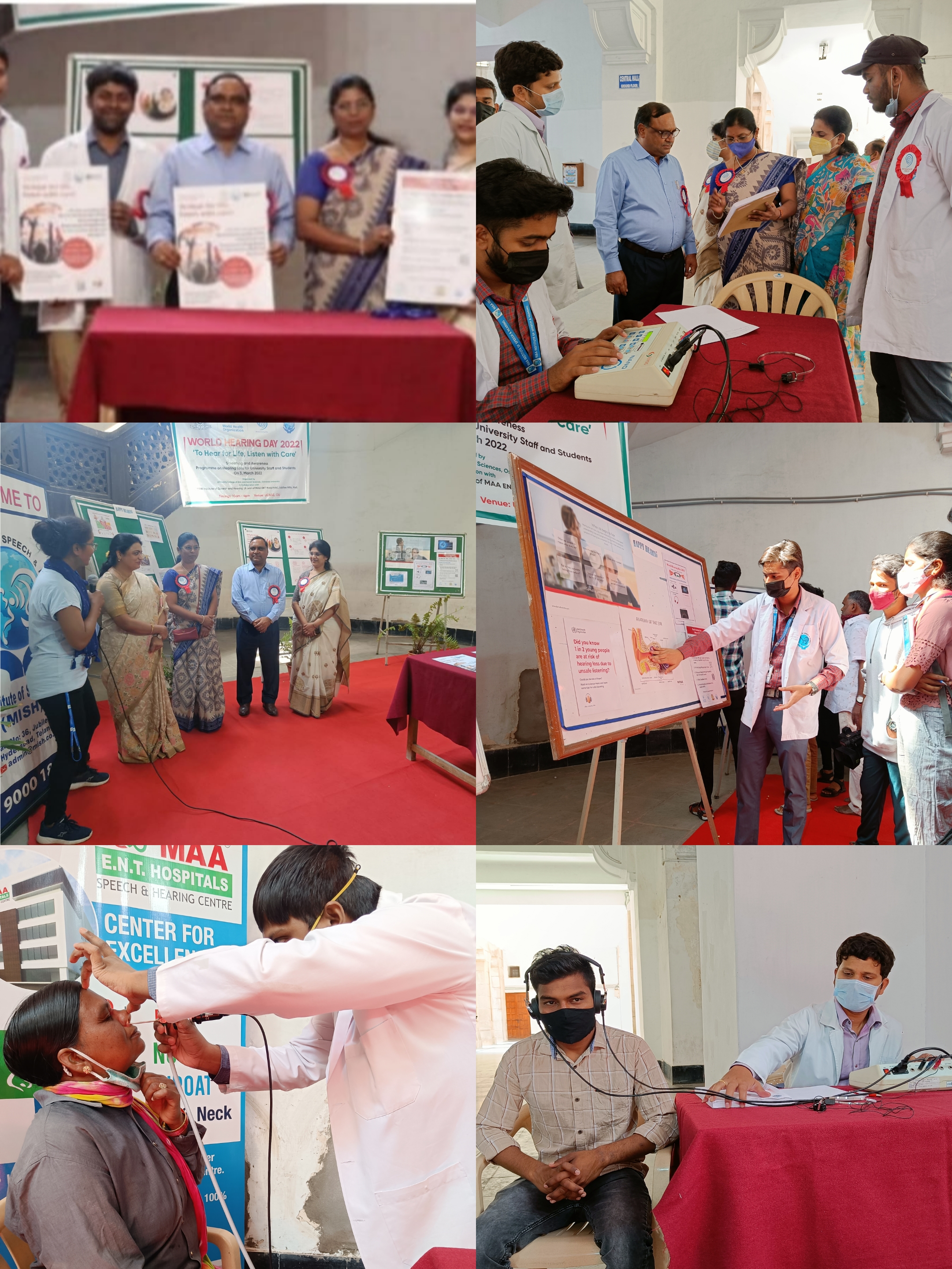 University College of Arts and Social Sciences, Osmania University in collaboration with MAA Institute of Speech and Hearing counted a free screening and awareness campaign for ear care and prevention of Hearing Loss. WHO Hearing Screening app ‘HearWHO’ app was used. The event was done in both digital and display modes. In the digital part two Google forms – used for before an after hearing screening with questions on awareness. A display of WHO material was used. ENT evaluation and Audiometric testing was also done. A certificate of participation was given.