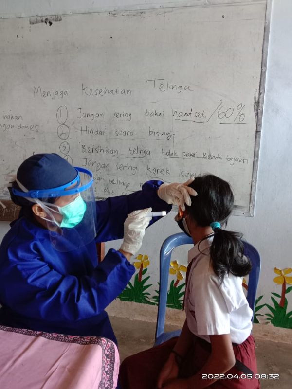 Education and Ear Health Check-up activities for elementary school students at SDN 1 Kapala Pitu, Lolai Village. Mid March 2022